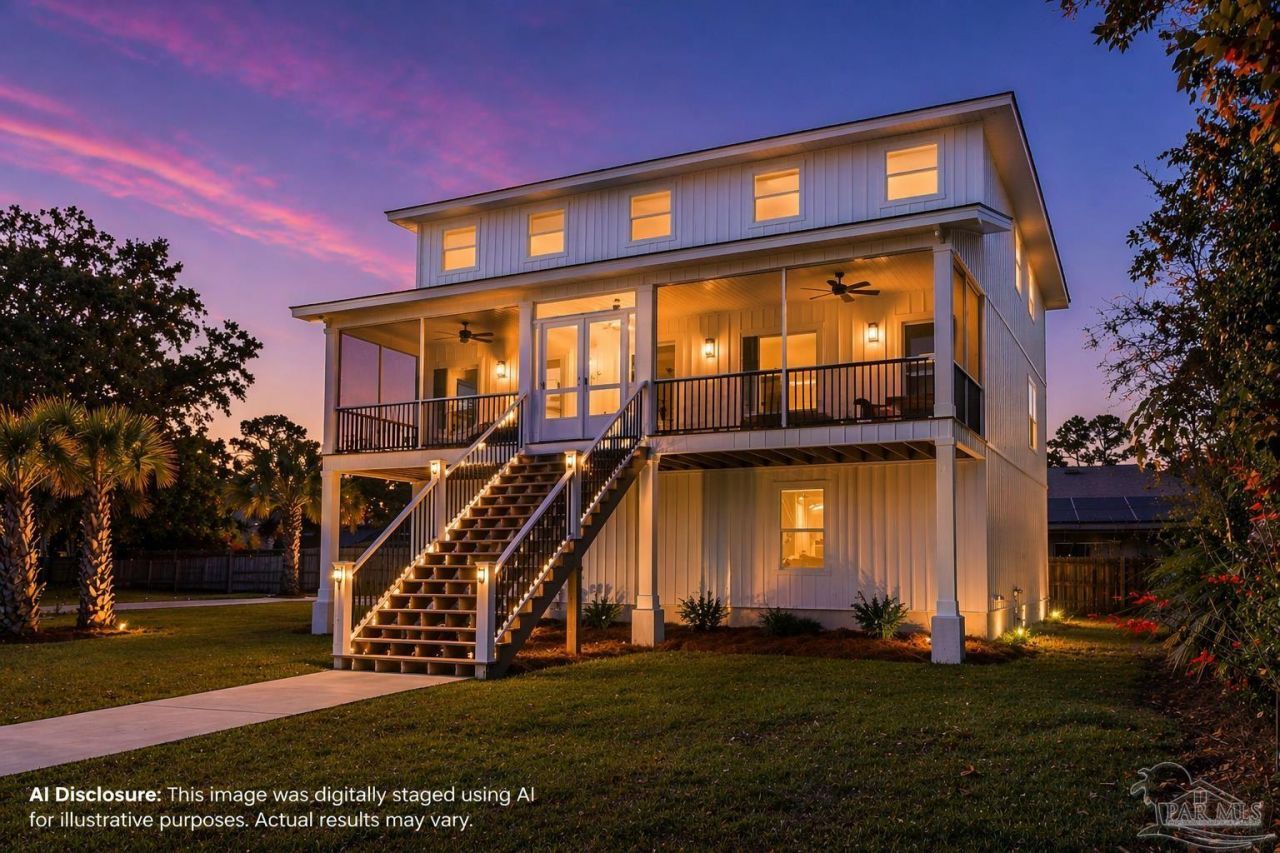 An absolutely stunning home in Paradise Beach-a low-density, lovely neighborhood nestled on Perdido Bay. Offered partially furnished. This three-level residence boasts a large screened-in porch with a sectional couch that is perfect for taking in the spectacular view of the bay. The interior of the home is flooded with natural light thanks to transom and large windows throughout. The floor plan is well thought out, with the primary bedroom located on the main level. Three additional bedrooms are on the top floor (one with an en-suite bathroom featuring a walk-in shower) along with an additional bathroom. The open kitchen features sparkling...read more